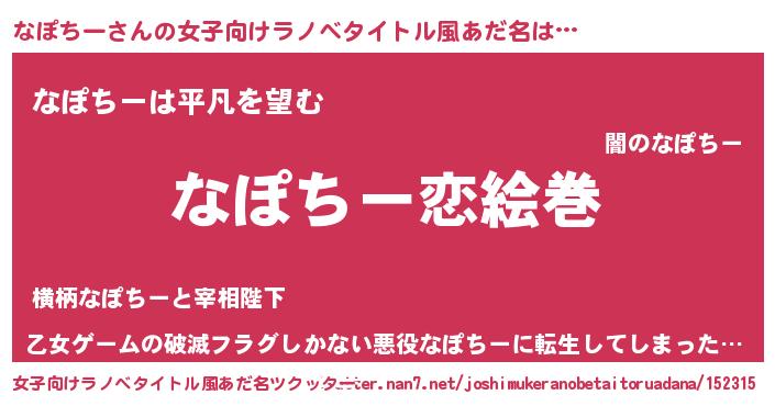 | 男性向けラノベタイトル風あだ名 | 『ノーゲーム・ノーナポチー』 |