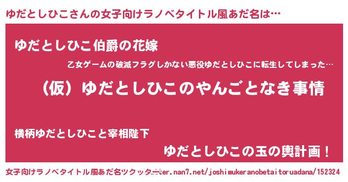 | 胡散臭い通販商品みたいなあだ名 | 『必ず成功する霊験あらたかなお札…その名も「ゆだとしひこ」』 |