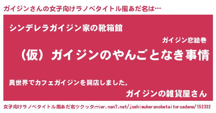 | 男性向けラノベタイトル風あだ名 | 『ガイジンの憂鬱』 |