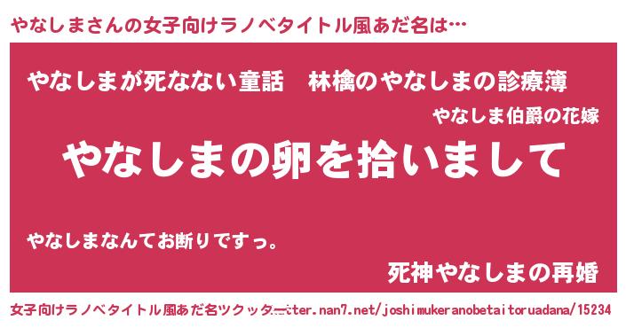 | 胡散臭い通販商品みたいなあだ名 | 『伝統あるサプリメント…その名も「やなしま」』 |