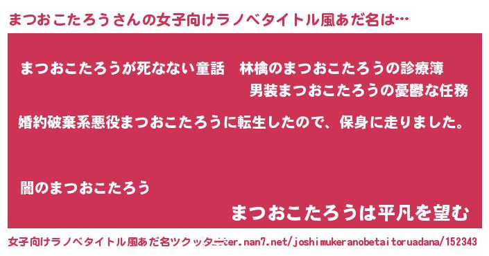 | ピコ太郎風あだ名 | 『マツ次郎』『ママ太郎』『マコ四郎』 |