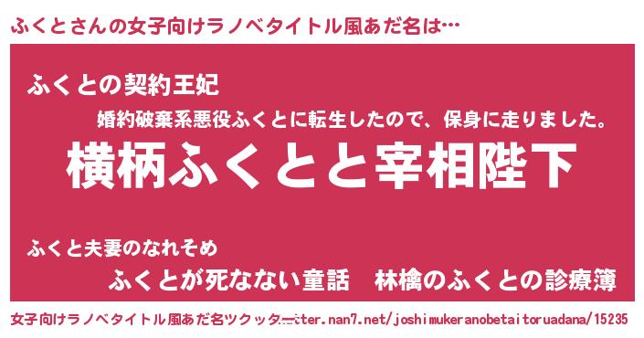 | 意味不明あだ名 | 『永久保存ふくと』『なめこ科ふくと属』 |