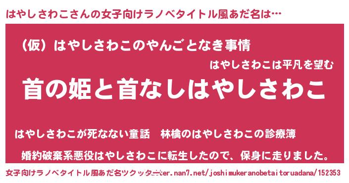 | ヒーロー風カッコイイあだ名 | 『スーパーハヤシサワコ』『暗黒騎士ハヤ』 |