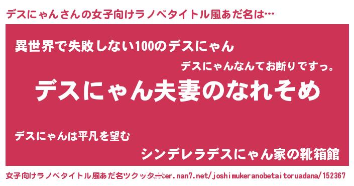 | ヘコむあだ名 | 『デスにゃん(爆)』『デス太郎』 |