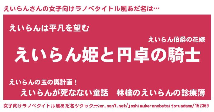 | 恥ずかしいあだ名 | 『プリティーえいらん』『エイリンリン』 |