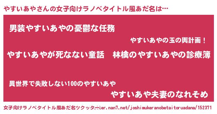 | 意味不明あだ名 | 『住所不定無職やすいあや(77歳)』 |