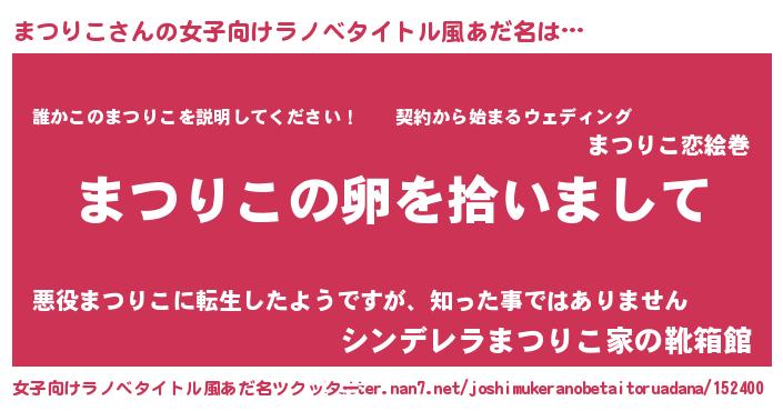 | 男性向けラノベタイトル風あだ名 | 『まつりこの嫁は女の子じゃないと思った?』 |