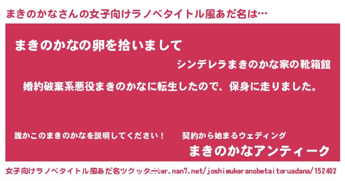 | 胡散臭い通販商品みたいなあだ名 | 『信頼と実績のサプリメント…その名も「まきのかな」』 |