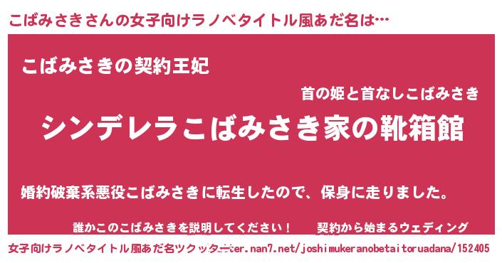 | 胡散臭い通販商品みたいなあだ名 | 『来世でも幸せになれる水素水…その名も「こばみさき」』 |