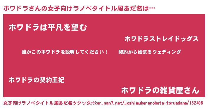 | 胡散臭い通販商品みたいなあだ名 | 『億万長者になれる水晶球…その名も「ホワドラ」』 |