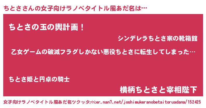 | 男性向けラノベタイトル風あだ名 | 『この素晴らしい世界にちとさを!』 |