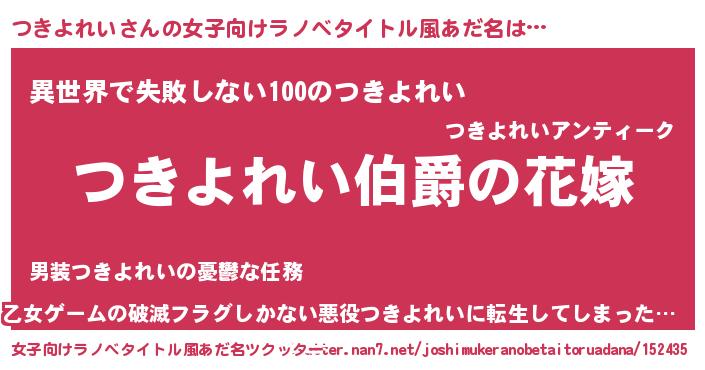 | 男性向けラノベタイトル風あだ名 | 『うちの娘の為ならば、俺はもしかしたらつきよれいも倒せるかもしれない。』 |