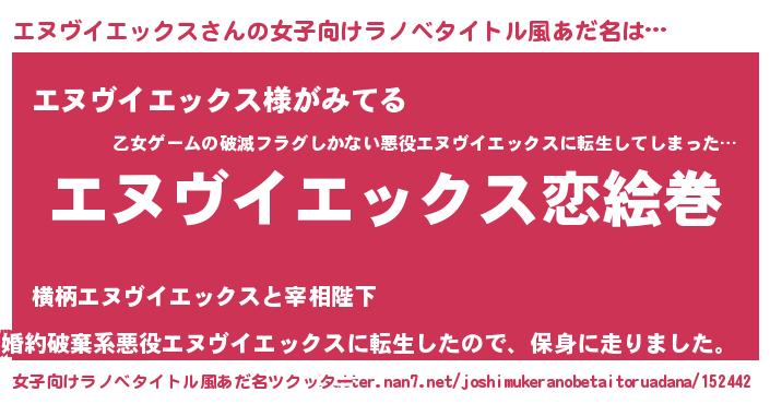 | 男性向けラノベタイトル風あだ名 | 『ノーゲーム・ノーエヌヴイエックス』 |
