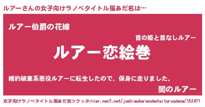 | 男性向けラノベタイトル風あだ名 | 『おまえをオタクにしてやるから、俺をルアーにしてくれ! 』 |