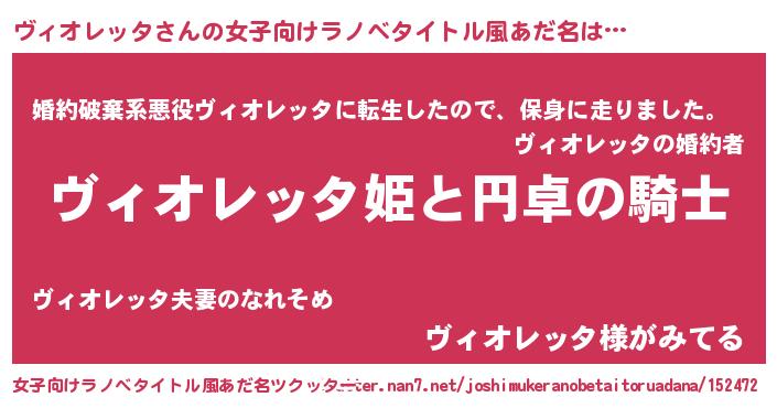 | 男性向けラノベタイトル風あだ名 | 『ヴィオレッタの憂鬱』 |