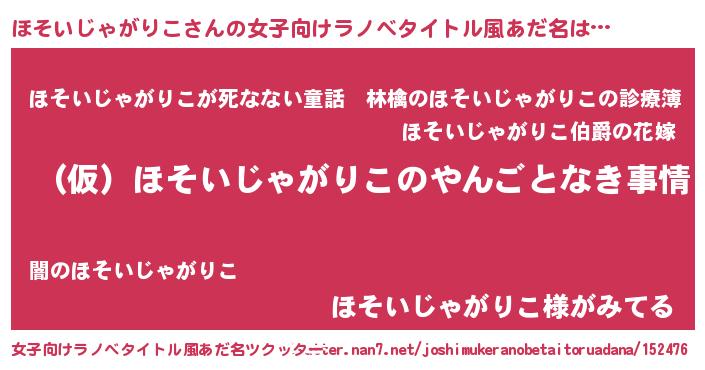 | 男性向けラノベタイトル風あだ名 | 『ほそいじゃがりこの憂鬱』 |