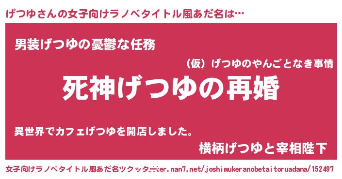 | 欧米人風あだ名 | 『ダニエルげつゆ』『アンジェラ・げつゆ』 |