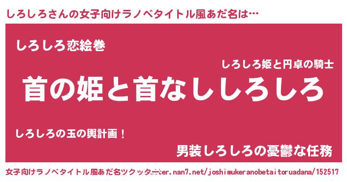 | 男性向けラノベタイトル風あだ名 | 『はたらくしろしろさま!』 |