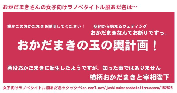 | 胡散臭い通販商品みたいなあだ名 | 『億万長者になれる水晶球…その名も「おかだまき」』 |
