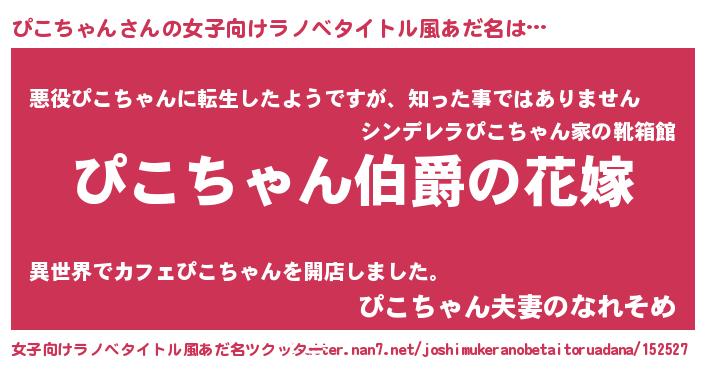 | ファンタジー風あだ名 | 『エターナルピコチャンー』 |