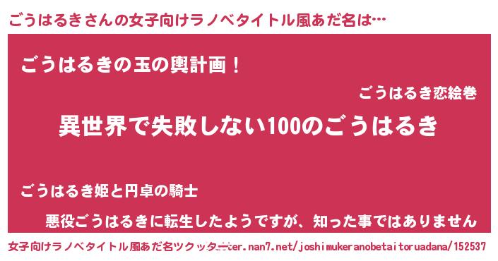 | ヘコむあだ名 | 『ごうはるき(震え声)』『ごうにゅー』 |