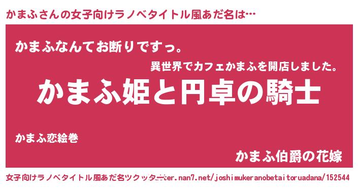| 男性向けラノベタイトル風あだ名 | 『カマフアートオンライン』 |