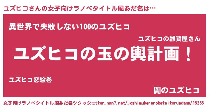 | 男性向けラノベタイトル風あだ名 | 『転生したらユズヒコだった件』 |