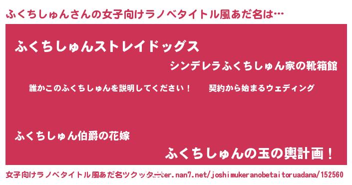 | 男性向けラノベタイトル風あだ名 | 『フクチシュンアートオンライン』 |
