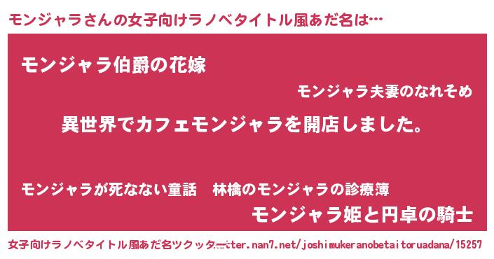 | ヒーロー風カッコイイあだ名 | 『ネオモンジャラ』『スーパーモンジャラ』 |