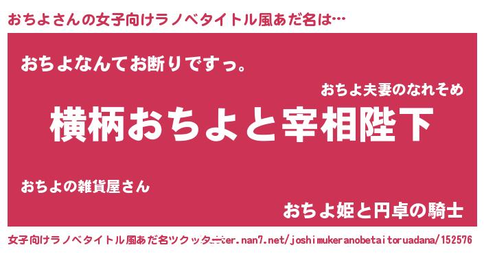 | 男性向けラノベタイトル風あだ名 | 『おちよに滅ぼされるだけの簡単なお仕事です』 |