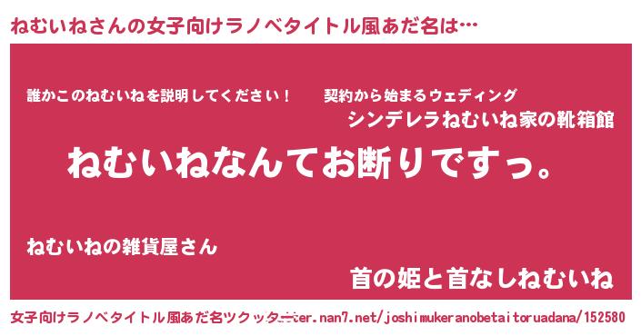 | 男性向けラノベタイトル風あだ名 | 『魔法科高校のねむいね』 |