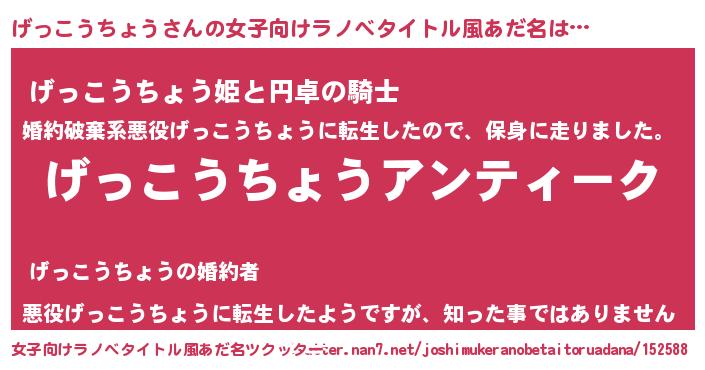| 男性向けラノベタイトル風あだ名 | 『魔法科高校のげっこうちょう』 |