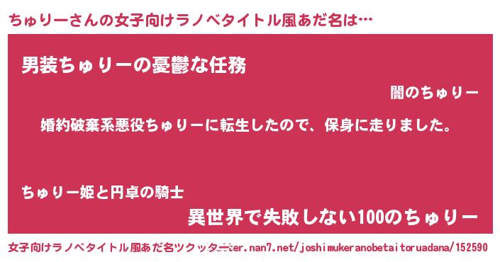 | 男性向けラノベタイトル風あだ名 | 『チュリースレイヤー』 |