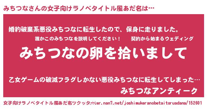 | 男性向けラノベタイトル風あだ名 | 『みちつなの嫁は女の子じゃないと思った?』 |