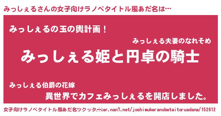 | 男性向けラノベタイトル風あだ名 | 『ミッシェルアートオンライン』 |