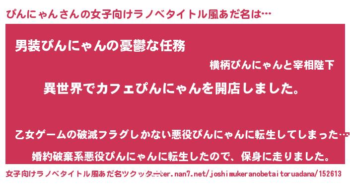 | 意味不明あだ名 | 『永久保存ぴんにゃん』『自称ぴんにゃん』 |