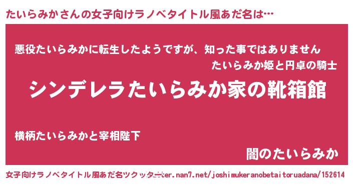 | 男性向けラノベタイトル風あだ名 | 『緋弾のタイラミカ』『たいらみかの憂鬱』 |