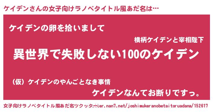 | 意味不明あだ名 | 『永久保存ケイデン』『自称ケイデン』 |