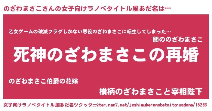 | 胡散臭い通販商品みたいなあだ名 | 『モンドセレクションを受賞した隕石のかけら…その名も「のざわまさこ」』 |