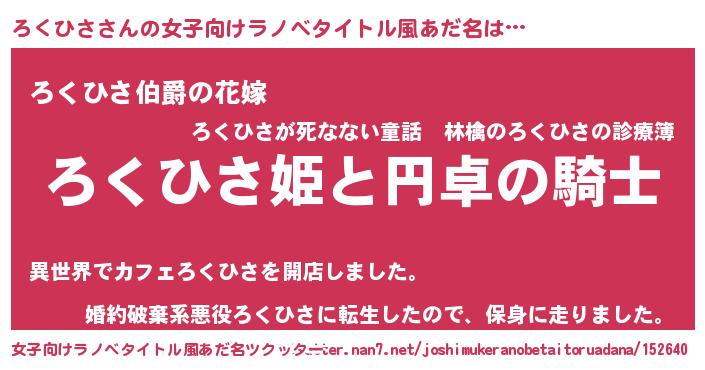 | 男性向けラノベタイトル風あだ名 | 『ロクヒサアートオンライン』 |