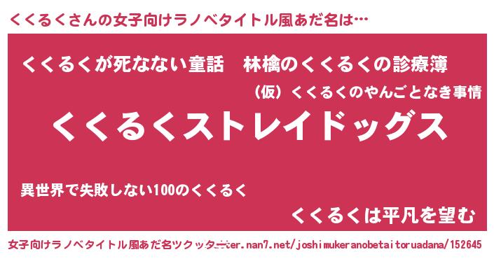 | 男性向けラノベタイトル風あだ名 | 『Re:くくるくから始める異世界生活』 |