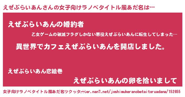 | 男性向けラノベタイトル風あだ名 | 『誰もが恐れるあのえぜぶらいあんが、ぼくの専属メイドになるようです。』 |