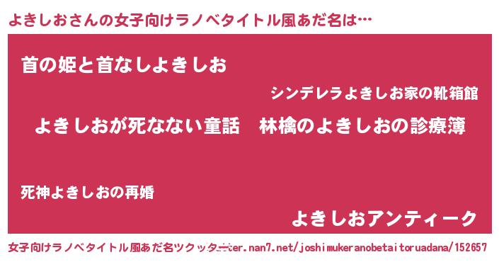 | ヒーロー風カッコイイあだ名 | 『仮面ヨキダー』『超時空戦士ヨキシオ』 |
