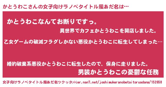 | 胡散臭い通販商品みたいなあだ名 | 『世界中を虜にした世界で10本だけ現存している希少なブランデー…その名も「かとうわこ」』 |