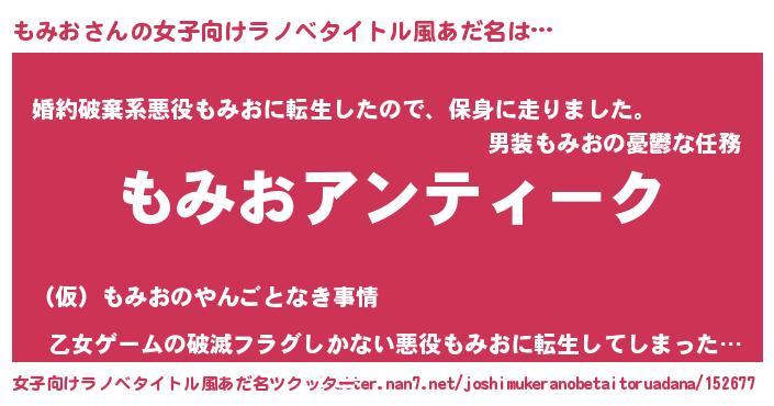 | 意味不明あだ名 | 『自称もみお』『しいたけ科もみお属』 |