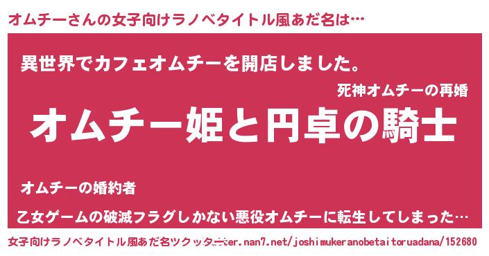 | 男性向けラノベタイトル風あだ名 | 『オムチーの憂鬱』 |