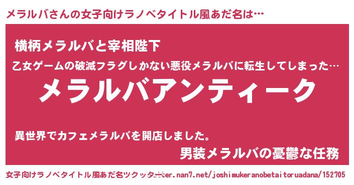 | 男性向けラノベタイトル風あだ名 | 『魔法科高校のメラルバ』 |