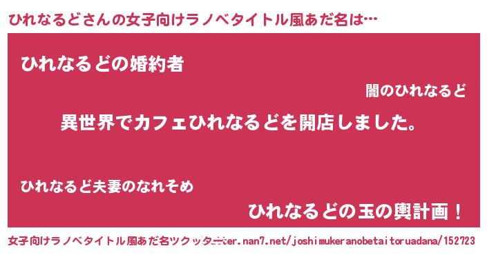 | 男性向けラノベタイトル風あだ名 | 『誰もが恐れるあのひれなるどが、ぼくの専属メイドになるようです。』 |