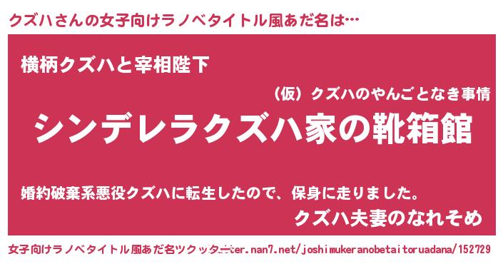 | 男性向けラノベタイトル風あだ名 | 『冴えないクズハの育てかた』 |