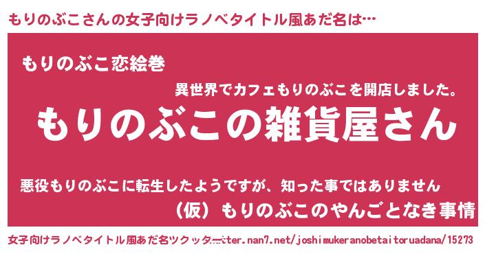 | 男性向けラノベタイトル風あだ名 | 『やはりもりのぶこの青春ラブコメはまちがっている 』 |